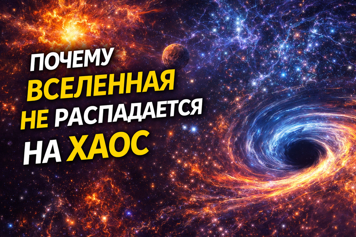 Если смотреть на космос поверхностно, он кажется хаотичным. Взрывы сверхновых, столкновения галактик, черные дыры, излучение - все это выглядит как полный беспорядок. Но если присмотреться внимательнее, возникает противоположное ощущение - во Вселенной удивительно много порядка. Галактики имеют структуру, звезды формируются по понятным законам, планеты движутся по устойчивым орбитам. И тогда появляется главный вопрос - почему все это не разваливается в хаос? Первое, что важно понять - хаос в физике не означает полный беспорядок. Это скорее чувствительность к начальным условиям. Даже хаотические системы подчиняются строгим законам. А значит, сам факт наличия хаотических процессов не означает разрушение структуры. Вселенная не свободна в своем поведении. Ее эволюция строго ограничена фундаментальными законами - гравитацией, квантовой механикой, термодинамикой. Эти законы не позволяют системе вести себя как угодно. Они задают диапазон возможных состояний, внутри которого и развивается кос