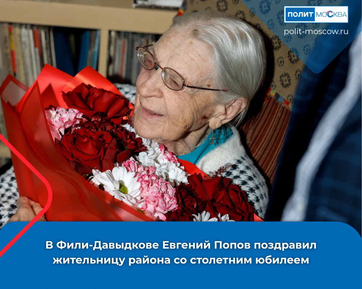 В Фили‑Давыдкове Евгений Попов поздравил жительницу района со столетним юбилеем