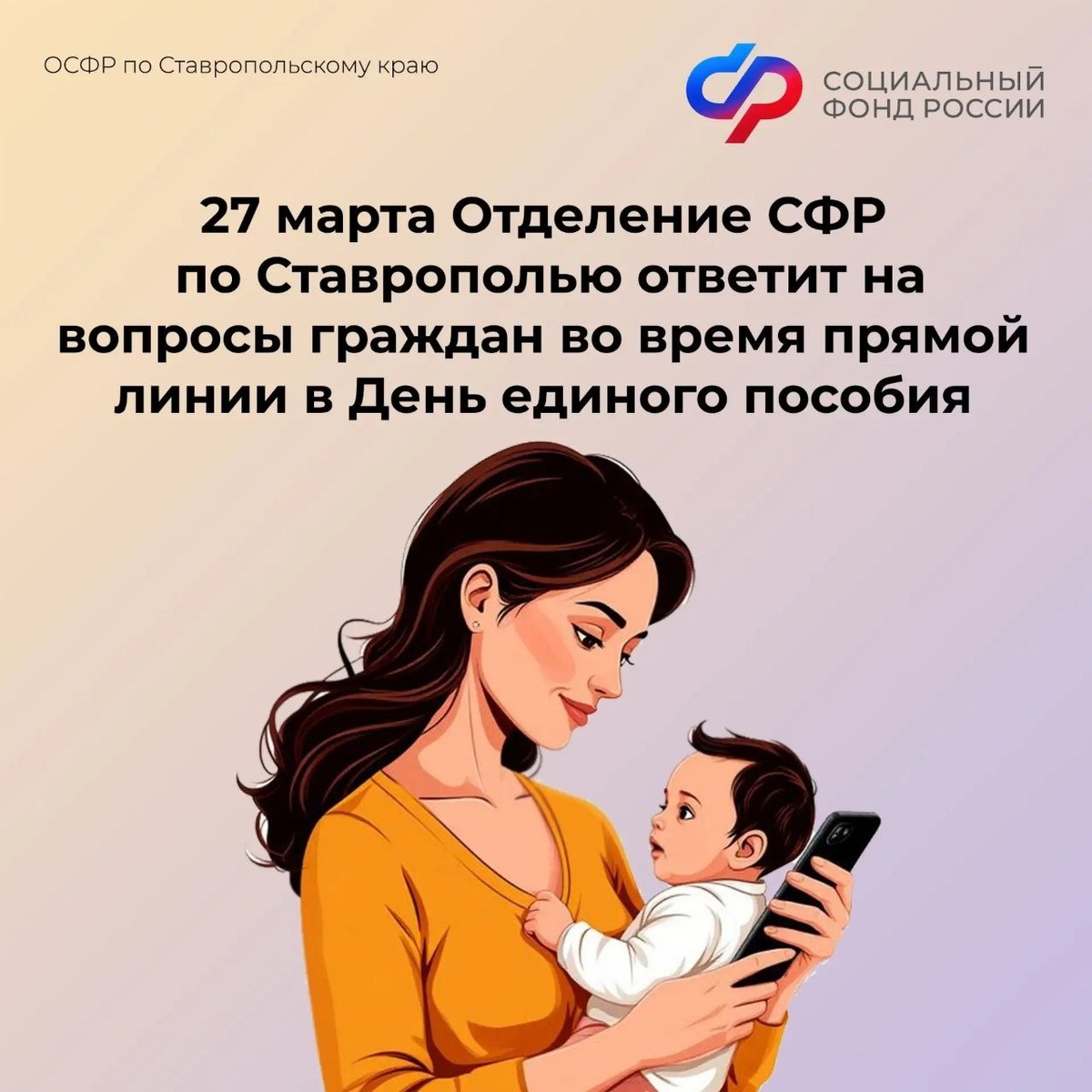 ☝27 марта Отделение СФР по Ставропольскому краю проведет для жителей региона День единого пособия