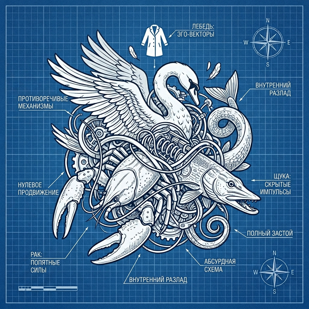 Порой кажется, что Дзен существует только для того, чтобы обсуждать проблемы самого Дзена. Хейтеры, боты, монетизация, токсичная среда. Целые каналы живут за счёт травли или советов, как ей противостоять. Это замкнутая экосистема. Она по-своему совершенна: убери отсюда нытьё про выплаты — и жизнь на платформе замрёт. Возможен ли здесь иной смысл? Помните басню про птицу, рака и рыбу? «Когда в товарищах согласья нет...». Но парадокс в том, что Дзен-то едет. А значит — согласие есть. Мы практически все согласны с этой порочной системой. Блогеры разрознены, но все вместе тянут эту несуразную конструкцию. Движение есть, но туда ли мы движемся? Басня Крылова — это не только про плохой коллектив. Она глубже наших обид на несовершенный мир. Давайте примем за аксиому: нам никто ничего не должен. А значит, искать причину застоя нужно в самом себе. Мы тратим колоссальное количество энергии на внешние трения. Нас задевает чужое мнение, кривая монетизация или чей-то успех. Внешние проблемы кажутс