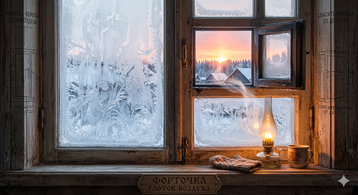 - Статус: Спасительница. Без форточки жизнь в запертой на зиму квартире превращается в душный плен.