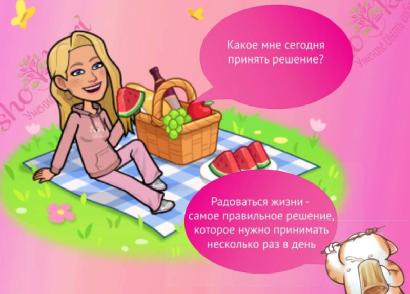 - Я проверяю свои запасы. У меня есть сок для себя? Если да — могу поделиться. Если нет — сначала наполняю себя. Без чувства вины.