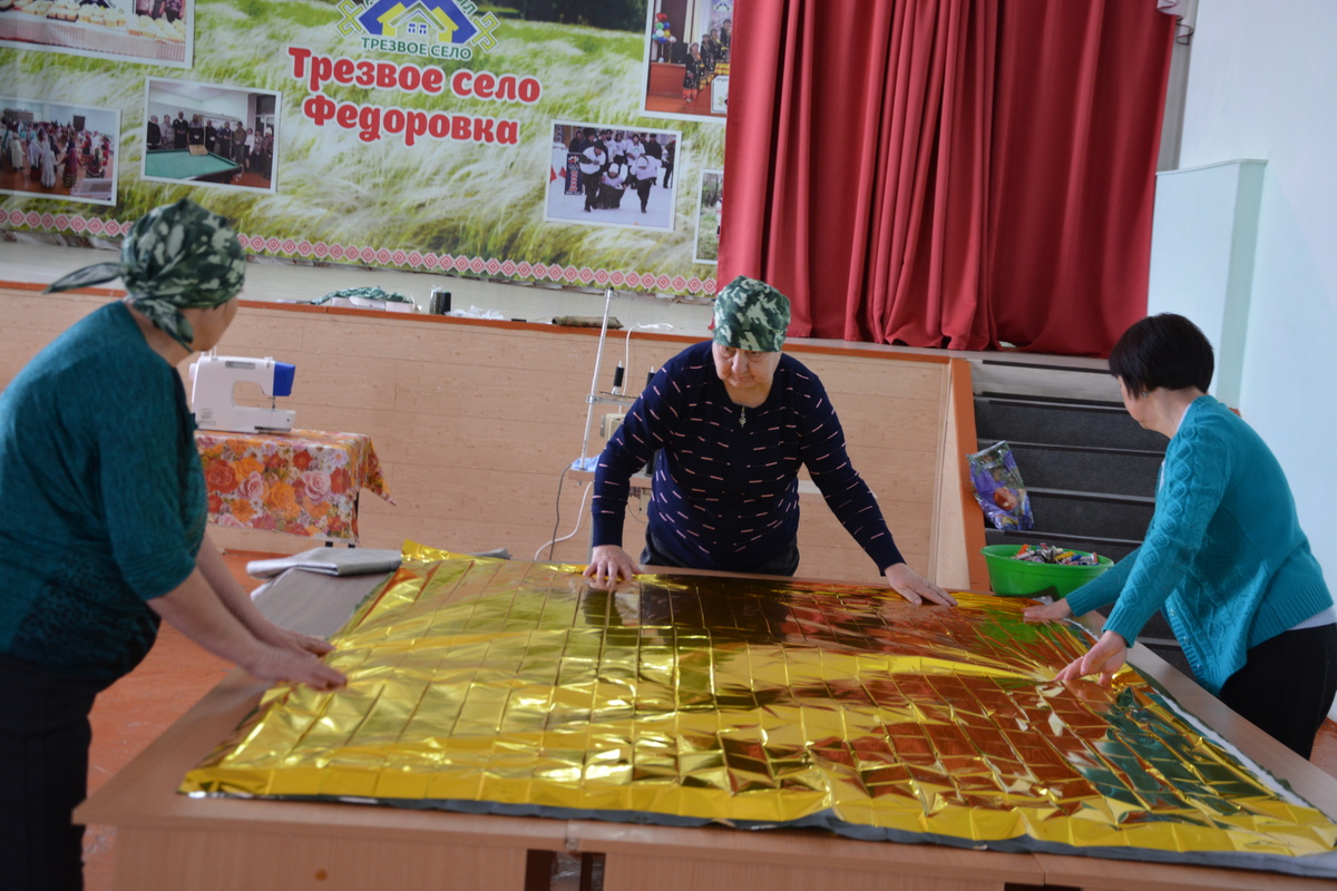 В селе Федоровка развернулась настоящая мастерская добра и заботы: местные жители объединились, чтобы шить антидроновые одеяла для участников специальной военной операции. Эта инициатива стала не только проявлением патриотизма, но и настоящим символом сплочённости и поддержки. Идея создания антидроновых одеял первоначально возникла у активисток села под руководством председателя волонтерской группы «Вместе к победе» Марины Игнатьевой. На сегодняшний день антидроновые одеяла являются одним из самых востребованных средств защиты в зоне специальной военной операции. Эти изделия, к примеру, такие как бронеодеяло «Эгида – У», обеспечивают защиту личного состава от пулевых и осколочных ранений, а также обладают маскировочными свойствами, позволяя скрывать технику и бойцов от приборов ночного видения и тепловизоров. Собрав средства на закупку материала, жители села Федоровка начали шить антидроновые одеяла. За прошедшую и нынешнюю недели уже сшито около 450 одеял, но работа не останавливается