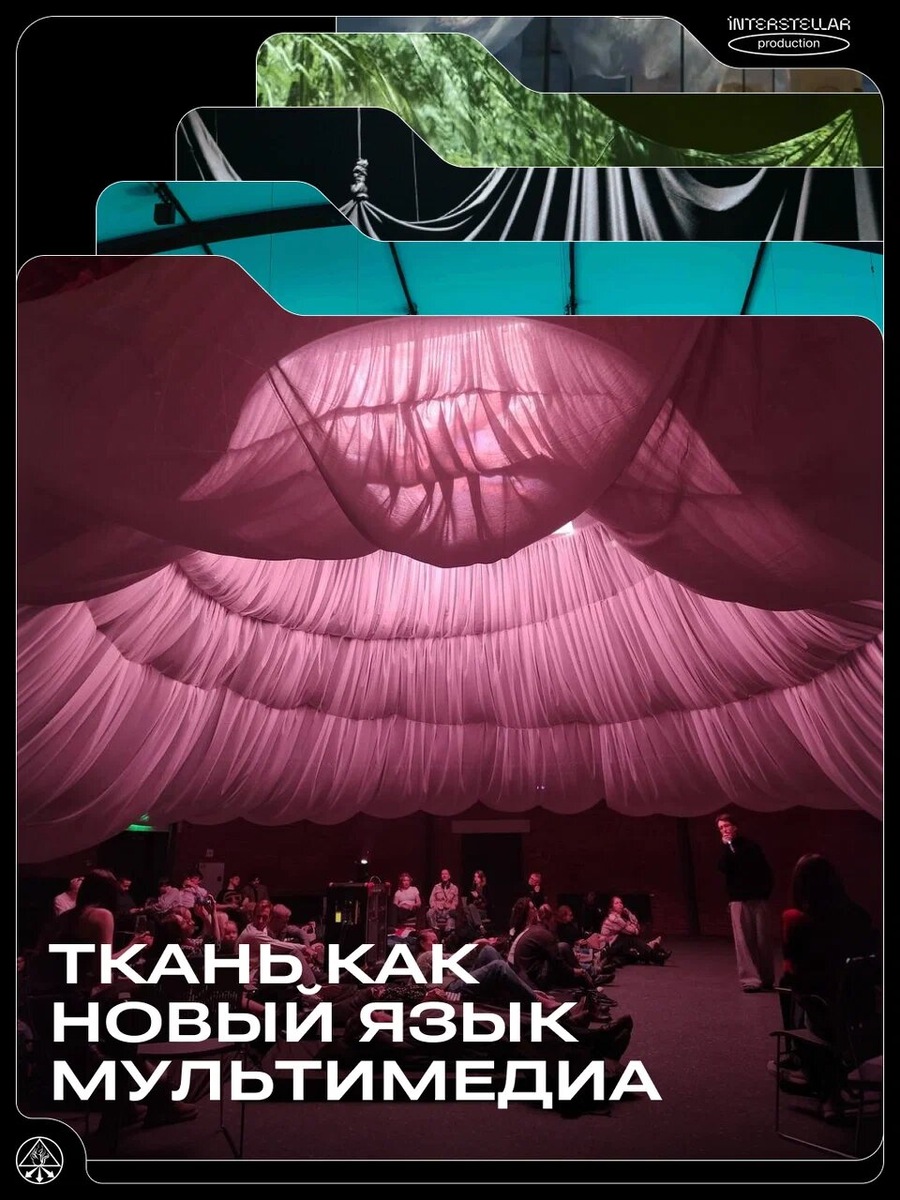 Но не к традиционному холсту, а к ткани как к активному медиуму. И пока часть индустрии только начинает осознавать этот тренд - мы уже активно с ним работаем. Почему именно ткань? ⚡️Во-первых, она делает изображение пространственным. В отличие от плоского экрана, ткань имеет складки, глубину и прозрачность. Проекция начинает существовать внутри объёма. ⚡️Во-вторых, ткань реагирует на среду. Она движется от воздуха, вибраций и даже присутствия людей. Это делает инсталляцию живой - каждый момент отличается от предыдущего. ⚡️В-третьих, ткань позволяет соединить архитектуру и изображение. Она может стать стеной, куполом, экраном или сценой одновременно. ⚡️И наконец, ткань работает с эмоциональной памятью. Это мягкий, человеческий материал, который ассоциируется с телом, одеждой, домом. Поэтому даже самые технологичные работы с тканью сохраняют ощущение физического присутствия. Собрали в наших карточках несколько сильных кейсов последних лет. Смотрите, сохраняйте, делайте круче! 🚀