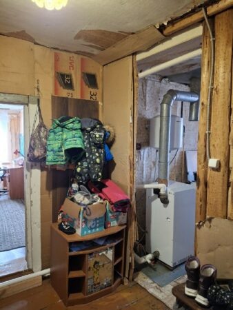 Екатерина Каплинская из Вышнего Волочка говорит спокойно, но за этим спокойствием — пять лет борьбы. Пятеро в семье: она, муж и четверо детей. Старшему 15 лет, младшему — год. Муж работает с утра до ночи, Екатерина в декрете. Живут в доме, который купили в ипотеку. Дом старый, 1959 года постройки, но крепкий. Своими силами меняли проводку, ставили газовый котёл, вставляли окна. Верили: всё получится. Потом начала течь крыша. Шифер, который выглядел целым летом, зимой просел под тяжестью снега. Гвозди повыпадали, кровля пошла трещинами. Дом стал протекать. Сначала в одной комнате, потом в другой. Стены, потолки, полы — всё стало разрушаться. «Мы три года жили на грани того, что крыша обрушится. Зимой снег таял, вода заливала всё, летом дожди. Обои и так были старые, отлетели. А тут ещё и насекомые пошли. Потому что дом сырой, запущенный», — рассказывает Екатерина. Ремонт крыши стоил огромных денег. Влезли в кредиты. Сделали рефинансирование, взяли ещё. Крышу починили, но на этом всё. Чт