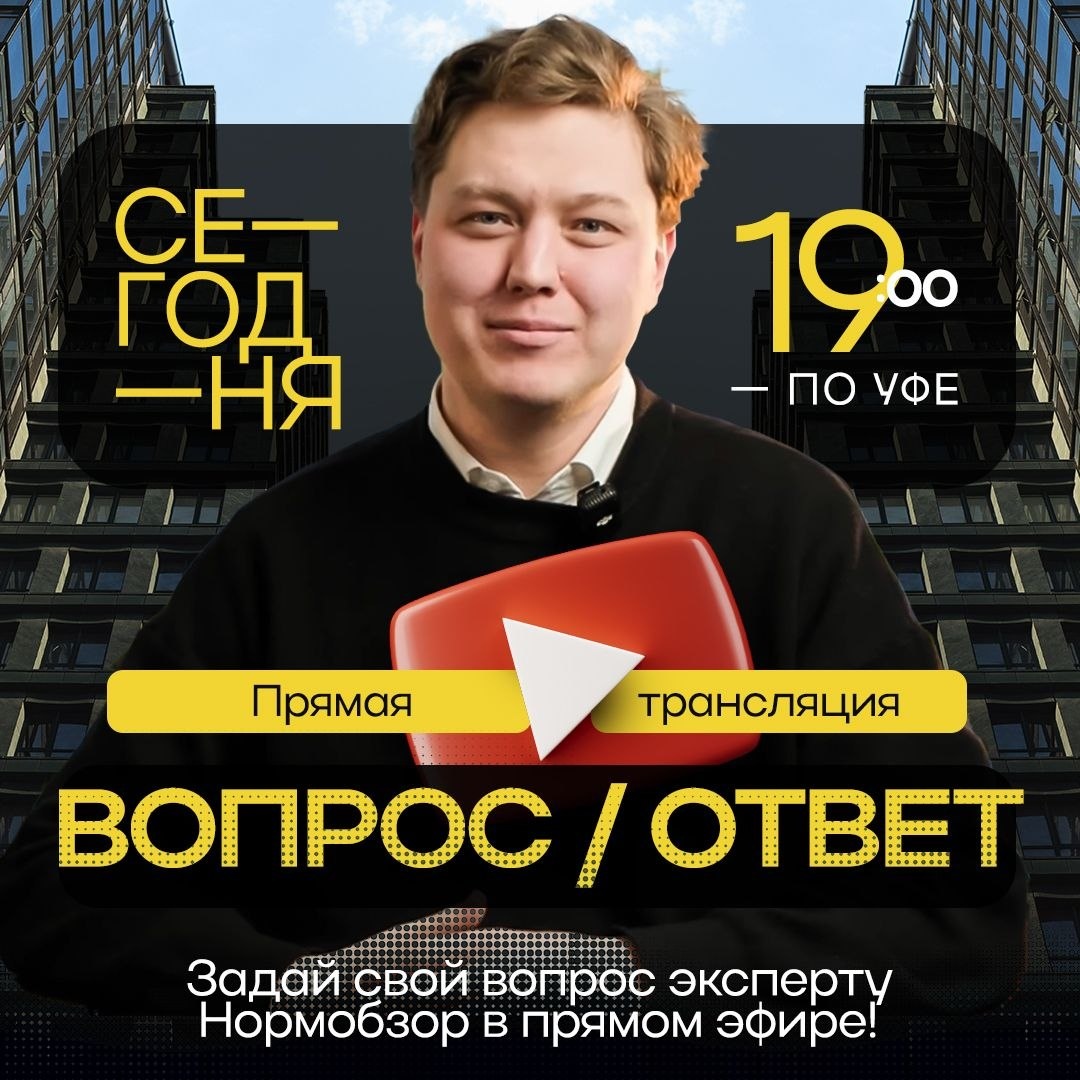 ! Если у тебя есть вопросы по ипотеке, недвижимости или покупке жилья — сегодня отличный шанс получить ответы от эксперта НормОбзор. На связи будет Булат: разберёт твою ситуацию, подскажет, направит и ответит на все вопросы в формате живого общения. И да, глупых вопросов не бывает. Задавай всё, что давно хотел узнать о недвижимости.