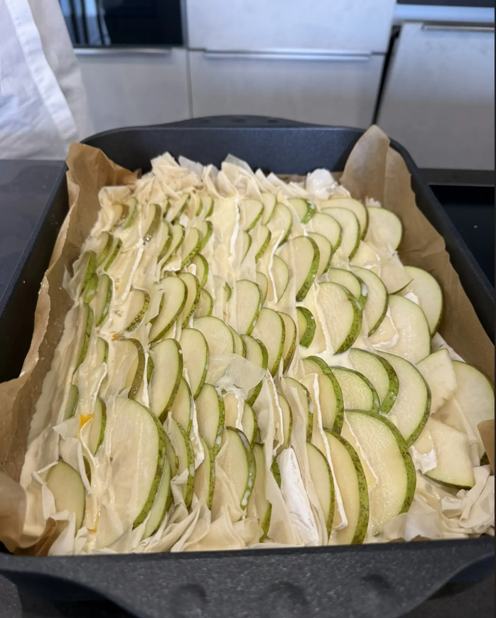 Бывает такое настроение, когда хочется не просто приготовить ужин, а создать маленькое кулинарное чудо, наполнив пространство уютом и ароматами. Именно с таким настроением мы собрались на днях в нашем шоу-руме, чтобы приготовить невероятно нежный и эффектный пирог с сыром Камамбер, грушей и хрустящим тестом фило. Почему именно этот рецепт? Потому что в нем есть всё: простота исполнения, изысканное сочетание ингредиентов и, конечно же, та самая «вау»-составляющая, которая так радует глаз и желудок. Мы любим, когда процесс приготовления приносит удовольствие, поэтому заранее подготовили все продукты. На нашем столе в шоу-руме красовались: