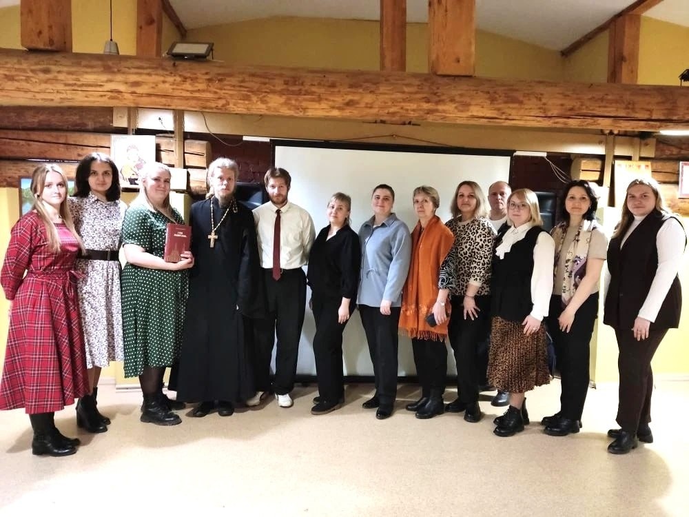 24 марта в Михаило-Архангельском храме города Коломны состоялась очная секция предметной недели «Культурное наследие Подмосковья: краеведческий аспект и методическое содержание в курсе «История нашего края». В работе секции приняли участие методист учебно-методического центра «Коломна» Е. В. Булгакова, педагоги-предметники духовно-нравственного цикла г.о. Коломна и ответственный во 2-ом Коломенском благочинии за религиозное образование и катехизацию, клирик Михаило-Архангельского храма иерей Димитрий Шаповалов. В ходе работы состоялось обсуждение путей взаимодействия Церкви и школы в деле духовно-нравственного воспитания, обмен опытом и лучшими педагогическими наработками, намечены пути совместной краеведческой работы. https://clck.ru/3Sjuv9