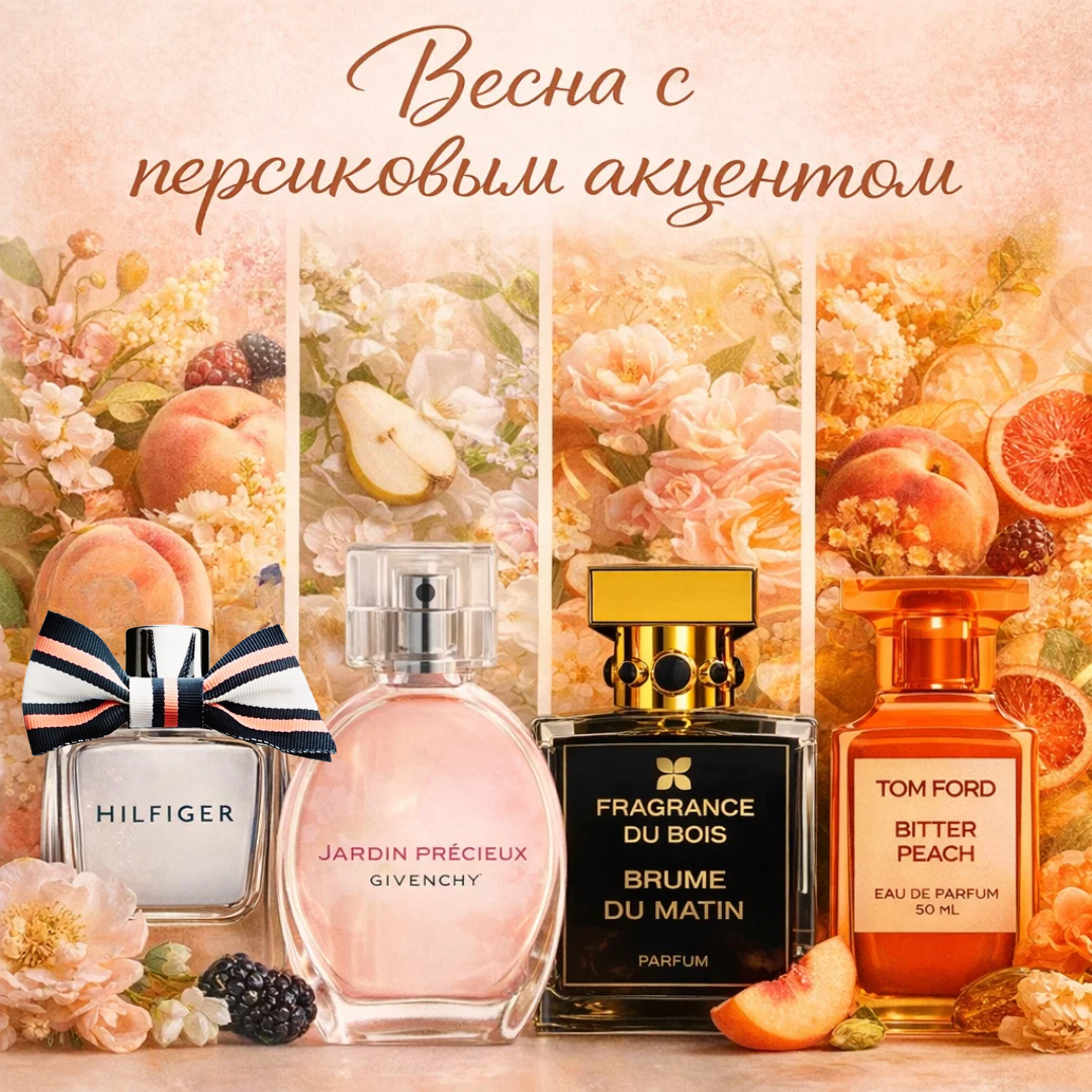 Весной к фруктовым нотам тянешься иначе. После зимы, где в ходу были плотные смолы, специи, густые древесные аккорды и тёплые сладкие шлейфы, хочется движения. Хочется, чтобы в аромате было больше света, воздуха, кожи, нагретой солнцем, и меньше тяжёлой декоративности. И в этот момент особенно интересно звучит персик. У персика в парфюмерии редкий дар: он отлично умеет менять характер композиции. Иногда даёт мягкость и бархат, иногда влажную сочность, иногда нежный фруктовый оттенок, который едва заметен, но именно он делает аромат живым. В одной композиции персик ведёт себя спокойно и деликатно, в другой добавляет телесности, в третьей собирает вокруг себя сливочную гладкость, а в четвёртой вдруг становится почти дерзким. Именно поэтому хорошие ароматы с этой нотой так интересно сравнивать: дело никогда не только в персике, а в том, какую роль ему дают. Мы выбрали четыре аромата, где эта нота раскрывается с разной интонацией — от лёгкой весенней фруктовости до густого, почти осязаемог