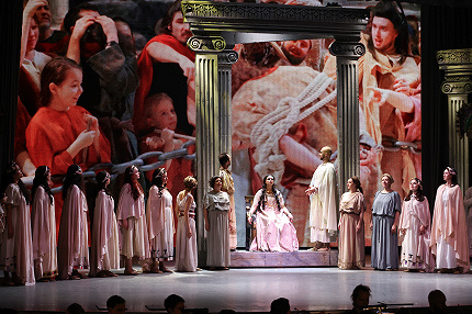 Наибольшее достоинство спектакля – его музыкальное воплощение. Маэстро Валерий Гергиев проявил себя столь же глубоким интерпретатором, как и в других операх Мусоргского, чей мир чувствует, что называется, всеми фибрами души и способен передать свой восторг перед дивным русским гением и публике. Оркестр и хоры (взрослый и детский) пленяли красивейшим насыщенным звуком и выразительным исполнением. По части вокала впечатляли даже относительно небольшие работы Максима Даминова (Молодой балеарец и Шагабарим), Мирослава Молчанова (Аминахар) и Андрея Зорина (Спендий). Титульные персонажи – неистовый и мощный Мато Михаила Петренко, холодновато-отстраненная Саламбо Зинаиды Царенко – были не только экзотически колоритны: центральная пара подарила своим героям богатейшие, огромные голоса, звучащие с завидной экспрессией.