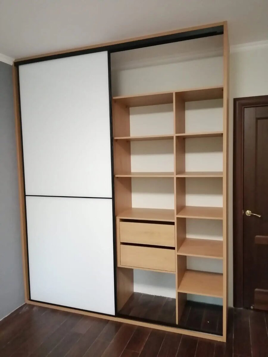 Закладная (обычно это сухой деревянный брус или фанера на металлических уголках) устанавливается строго по линии будущего фасада шкафа. Она создает жесткое основание, к которому монтажники потолков крепят свой профиль. Шкафы-купе или распашные шкафы не могут упираться дверями непосредственно в бетонное перекрытие или натяжное полотно. Идеально ровных бетонных потолков практически не бывает. Зачастую перепад высот от одного угла до другого может составлять н