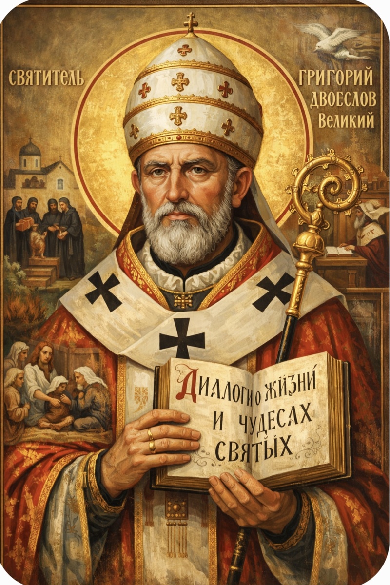 Святитель Григорий Двоеслов (Великий) — один из самых почитаемых святителей Западной Церкви, живший в VI–VII веках и оставивший глубокий след в истории христианства. Он родился около 540 года в Риме, в знатной и благочестивой семье. Получив прекрасное образование, Григорий сначала занимал высокую государственную должность — был бы префектом города Рима. Однако мирская жизнь не удовлетворяла его