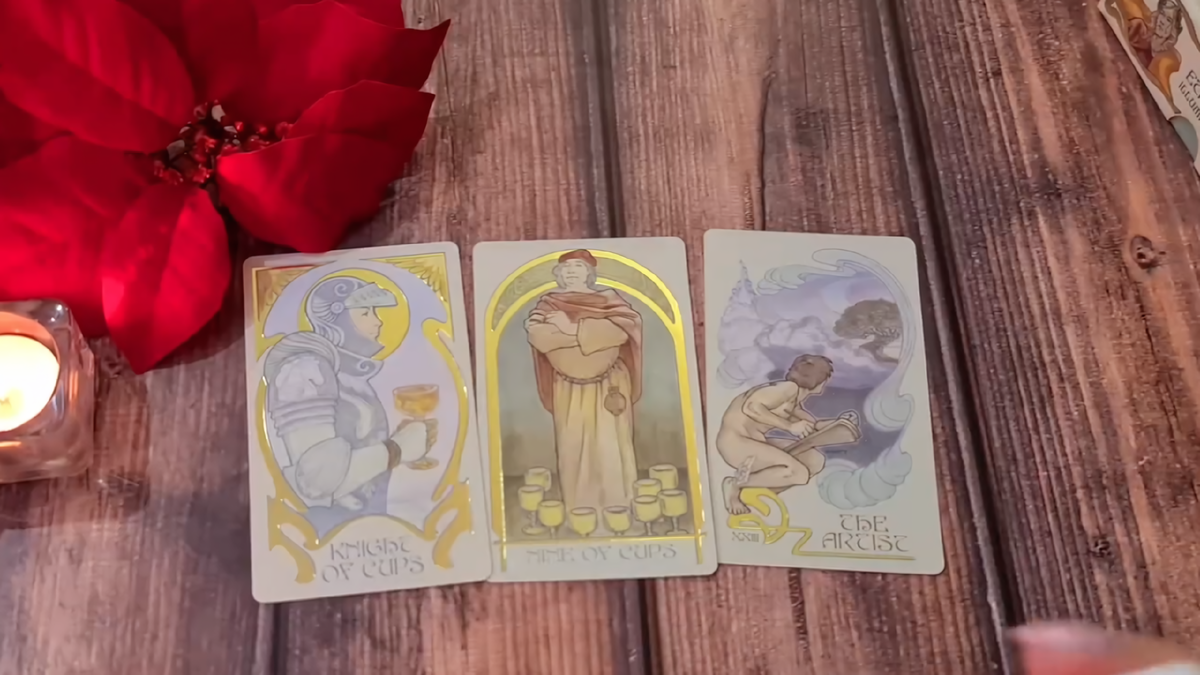 Девятка Кубков — он получает удовольствие. Эгоизм ему присущ: возможно, он человек, который не может жить без любви, но ему нужно, чтобы она была именно от вас. Однако Восьмёрка Кубков говорит: в его жизни есть уходы, расставания — возможно, помимо его воли. Может, он был вынужден уйти. И вот он сейчас — как Король Мечей, который принял решение и ушёл, несмотря на то, что внутри у него живут чувства. Он не демонстрирует их, прячет за жёсткой бронёй, но они есть. Он — закрытый поэт. И ему сейчас тяжело, потому что его влюблённость, любовь, всё это — доставляет ему не только радость, но и трудности. Эти трудности, возможно, связаны с обязательствами, которые он должен выполнять. Именно из-за них он вынужден был уйти — отказаться от чувств, от любви, от эмоций. Он несёт какую-то ношу, от которой не мог отказаться.