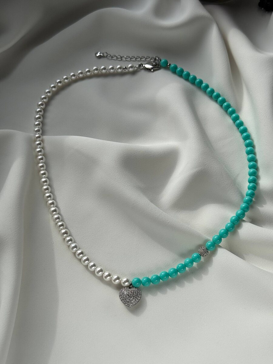 🌿! Колье из искусственного жемчуга. Белые и бирюзовые бусины создают изысканный контраст, который привлечет внимание и добавит элегантности вашему образу. Цена: 3590₽ Для оформления заказа пишите в 👉🏻 @cristaria Или в WhatsApp по ссылке: https://wa.me/79220146086 Внимание‼️ Это единственный официальный номер телефона для оформления заказа👆🏻 Или оформите покупку на сайте Cristaria.ru
