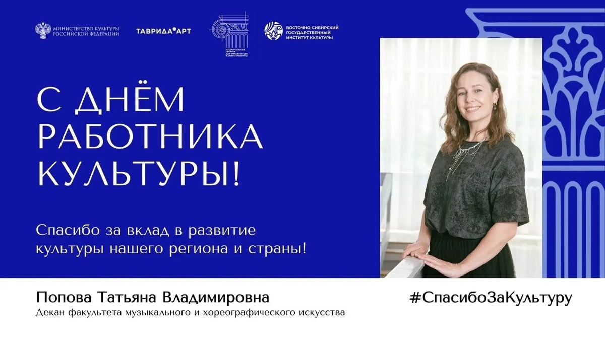 ♥️ В честь Дня работника культуры мы присоединились к всероссийской акции Министерства культуры РФ. Это повод сказать слова благодарности всем сотрудникам и преподавателям нашего института ❤️ Вы — настоящие хранители традиций, вдохновители и наставники, которые открывают для нас мир искусства, учат видеть прекрасное в обыденном и дарить радость окружающим. Благодаря вашему труду, таланту и преданности своему делу культура живёт и развивается. От всей души благодарим вас за мудрость, чуткость и безграничную самоотдачу! Именно вы зажигаете в студентах искру творчества, помогаете раскрыть таланты и поверить в себя. Каждый ваш урок, совет и поддержка — это бесценный вклад в будущее не только отдельных людей, но и всей нашей культуры. Ваша энергия вдохновляет на смелые идеи и новые победы! Присоединяйтесь к нашей акции! Публикуйте посты с хештегом #СпасибоЗаКультуру и рассказывайте о тех, кто делает наш институт особенным. С праздником, дорогие работники культуры!