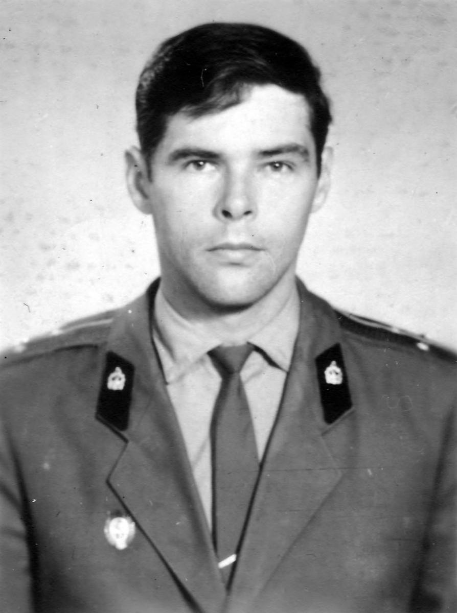 Старший лейтенант инженерных войск Ежов Юрий Степанович в открытом повседневном кителе с нашивными погонами образца 1969 года