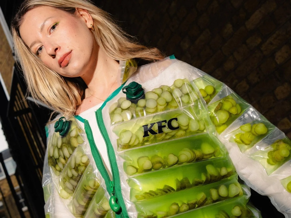 В прозрачной подкладке вместо наполнителя — рассол с нарезанными корнишонами. Куртку сделали в поддержку нового огуречного меню — и её реально можно будет заполучить. То есть где-то есть человек, который это наденет. Ростикс, ждём такой же дроп 🙈 CtrlAltDelights- подписаться