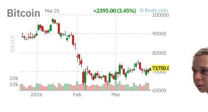 В марте 2026 на фоне эскалации конфликта США-Иран биткоин (BTC) пережил резкий провал на 12% с $72,000 до $63,000, вызвав ликвидации на $300 млн. Но он быстро отыграл потери и стабилизировался около $69,000 — благодаря институциональному спросу и характеристикам "цифрового золота". Исторически BTC показывает кратковременные провалы при обострении войн, но быстро восстанавливается, играя роль убежища от волатильности рынков и инфляционных рисков. Для инвестора BTC — сигнал диверсификации в периоды геополитической нестабильности. Если удержит поддержку $69,000, есть потенциал ралли до $75-80k. Впрочем, прибыльные фиксации и сроки деэскалации могут спровоцировать краткосрочные коррекции. Что думаешь — держать ли лонг на BTC или фиксировать при откате? #новости #БезПафосаФинансы #BTC #крипто #БПФ_Day