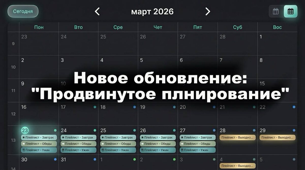 ΠΌΠΎΠΆΠ½ΠΎ Π½Π°ΡΡΡΠΎΠΈΡΡ Π½Π° Π½Π΅Π΄Π΅Π»ΠΈ ΠΈ Π΄Π°ΠΆΠ΅ ΠΌΠ΅ΡΡΡΡ Π²ΠΏΠ΅ΡΡΠ΄ π Π‘ΠΎΠ±Π΅ΡΠΈΡΠ΅ ΠΊΠΎΠ½ΡΠ΅Π½Ρ-ΠΏΠ»Π°Π½ ΠΎΠ΄ΠΈΠ½ ΡΠ°Π· ΠΈ ΡΠΏΠΎΠΊΠΎΠΉΠ½ΠΎ Π·Π°Π±ΡΠ΄ΡΡΠ΅ Π½Π° Π½Π΅ΡΠΊΠΎΠ»ΡΠΊΠΎ ΠΌΠ΅ΡΡΡΠ΅Π². Π§ΡΠΎ ΡΡΠΎ Π΄Π°Π΅Ρ Π½Π° ΠΏΡΠ°ΠΊΡΠΈΠΊΠ΅: β° Π΄Π΅ΡΠ°Π»ΡΠ½ΠΎ Π½Π°ΡΡΡΠΎΠ΅Π½Π½ΡΠΉ ΠΏΠΎΠΊΠ°Π· ΠΏΠΎ Π²ΡΠ΅ΠΌΠ΅Π½ΠΈ ΡΡΡΠΎΠΊ (Π½Π°ΠΏΡΠΈΠΌΠ΅Ρ, ΡΡΡΠΎΠΌ- Π·Π°Π²ΡΡΠ°ΠΊΠΈ, Π² ΠΎΠ±Π΅Π΄- Π±ΠΈΠ·Π½Π΅Ρ Π»Π°Π½ΡΠΈ, Π²Π΅ΡΠ΅ΡΠΎΠΌ-ΡΠΆΠΈΠ½Ρ ΠΈ ΡΠΎΡ ΠΏΡΠΎΠ³ΡΠ°ΠΌΠΌΡ) π ΠΎΡΠ΄Π΅Π»ΡΠ½ΡΠΉ ΠΊΠΎΠ½ΡΠ΅Π½Ρ Π½Π° Π²ΡΡ