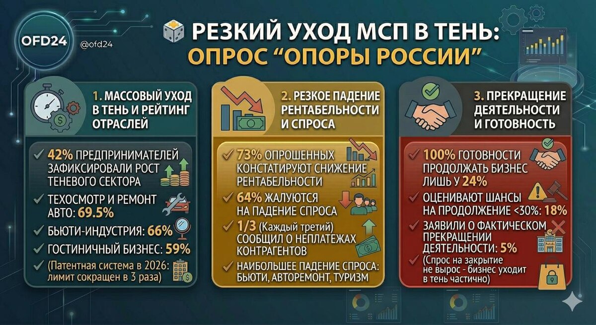 Малый бизнес начал массово уходить в тень после налоговой реформы — опрос «Опоры России» показал резкий рост теневой экономики в МСП