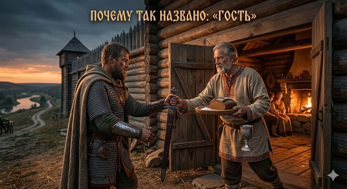 - Логика нейминга: «Чужак, с которым заключен мир». Гость — это тот, кто пришел извне, но на время трапезы и ночлега получил статус неприкосновенности.