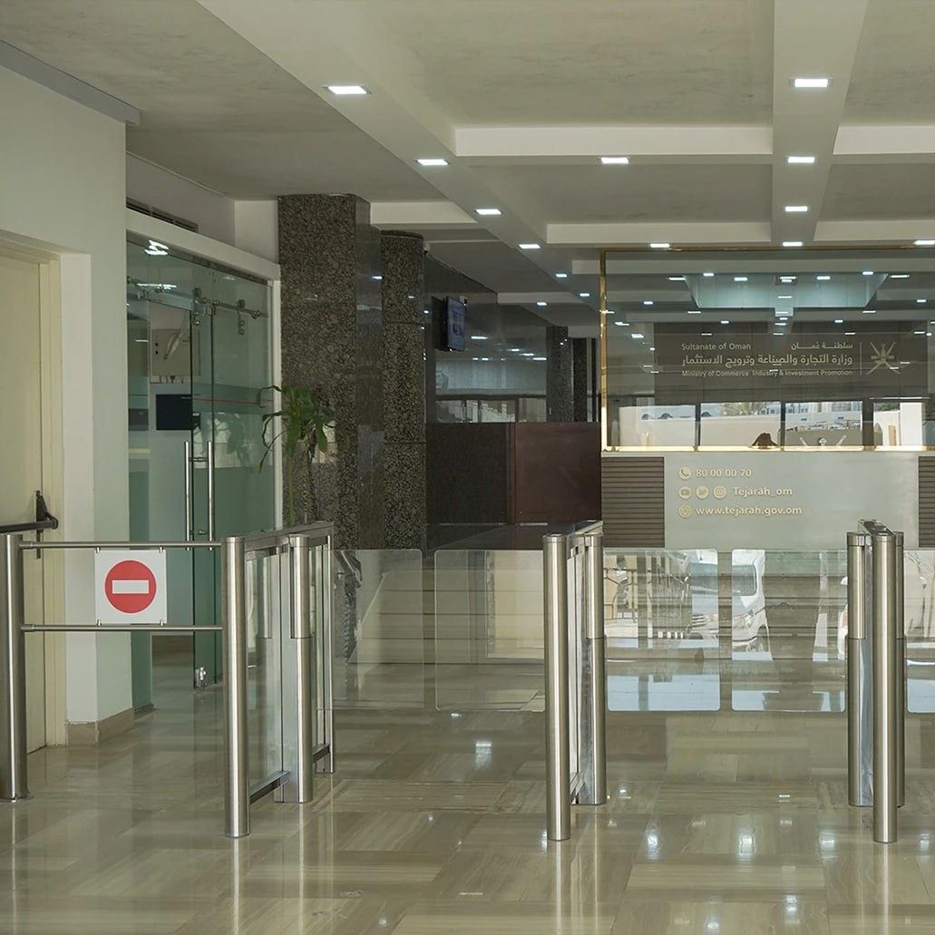 📍Министерство торговли, промышленности и поощрения инвестиций, Маскат, Султанат Оман. Министерство торговли, промышленности и поощрения инвестиций — государственный орган Султаната Оман, отвечающий за регулирование торговли, промышленности и привлечение инвестиций в стране. Скоростной проход c распашными створками ST-11 отличают компактные габариты, благодаря которым турникет подходит для установки на небольших проходных с повышенными требованиями к дизайну, комфорту и пропускной способности. Для увеличения количества зон прохода устанавливаются двусторонние секции STD-11. Каждая центральная секция позволяет организовать одну дополнительную зону прохода. Автоматическая калитка WMD-05S предназначена для организации контроля доступа, прохода с багажом и крупногабаритным грузом. В калитку встроен замок механической разблокировки, позволяющий в случае необходимости с помощью ключа разблокировать ее (обеспечить свободное открывание створок).