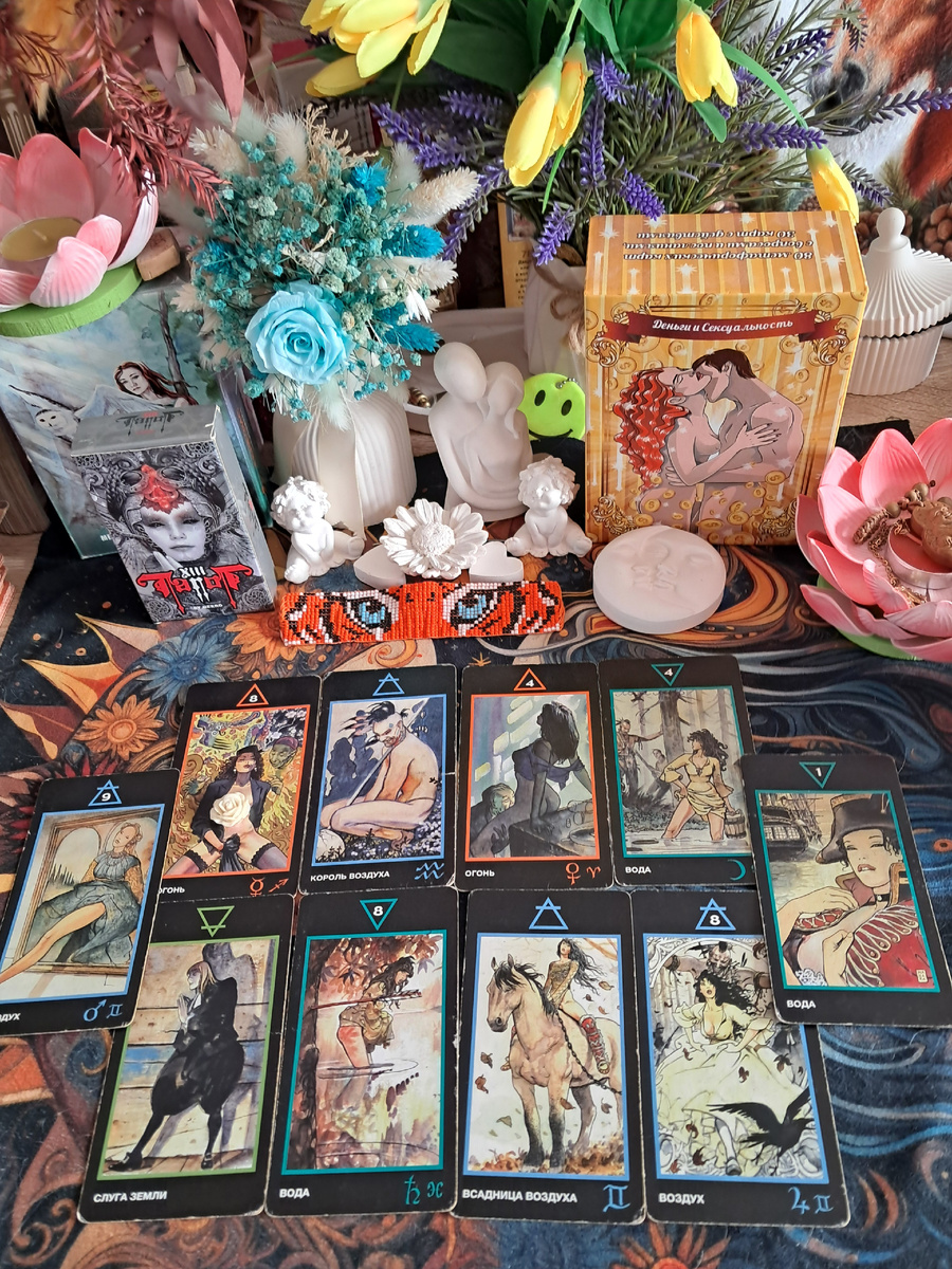 Я задалв вопрос на колоде Манара — это эротическая, но при этом очень честная колода о власти, желаниях и границах. Расклад получился объёмным, но в нём чётко прослеживается стратегия, которая позволит вам снять его напор, не потеряв себя.