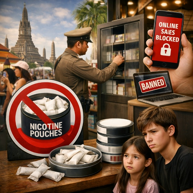 Правительство Таиланда решительно ужесточает меры против нелегальной продажи и рекламы никотиновых пакетиков, отмечая их широкое распространение в соцсетях, туристических зонах и торговых центрах. Власти особо подчеркивают опасность этих продуктов для детей и подростков. Ключевые изменения и наказания: • Запрет на открытую выкладку: Никотиновые пакетики (снюс, "белые пакетики") приравниваются к табачным изделиям. Их открытая демонстрация в туристических местах и универмагах нарушает закон и карается штрафом до 40 000 бат. • Блокировка онлайн-продаж: Реклама и продажа через соцсети и электронные каналы также запрещены. Нарушителям грозит до 3 месяцев тюрьмы или штраф до 30 000 бат. • Ограничения для обычных магазинов: Продукция должна храниться вне поля зрения покупателей (в шкафах, под прилавком), выдаваться только по запросу. Рекламные материалы и акции исключены. • Цель мер: Сокращение импульсивных покупок, особенно среди молодежи, и соответствие давней политике Таиланда по строгому