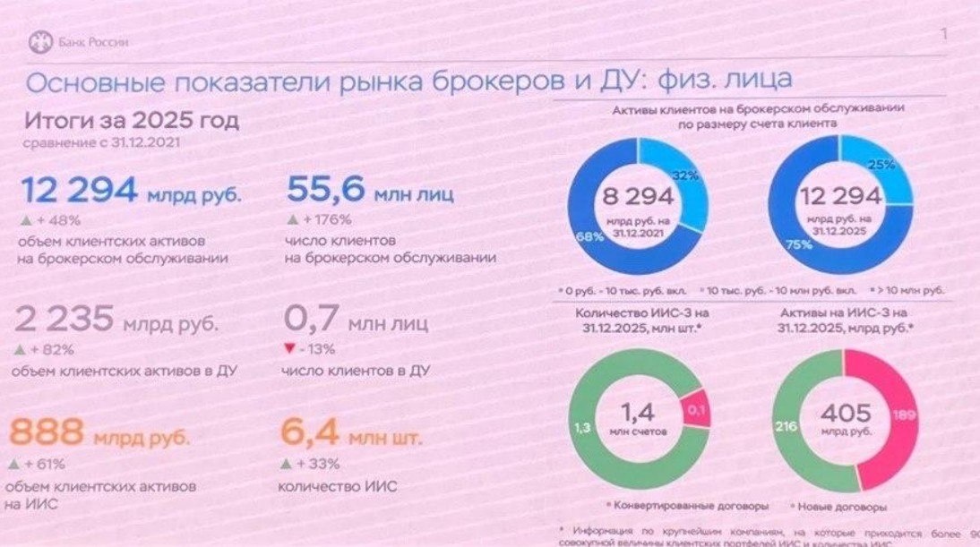 : медленный рост С ИИС-3 можно выводить дивиденды. Пока счёт не закрыт, нет налога. Налоговый вычет до 30 млн руб за один налоговый период с одного ИИС-3 В отличии от ИИС старого типа (А и Б), на ИИС-3 можно зачислять любые суммы (на старые — не более 1 млн руб. в год). Но россияне слабо пользуются Активы на ИИС-3 на конец прошлого года составляли ₽405 млрд (₽216 млрд — на новых договорах, ₽189 млрд — на сконвертированных). В ноябре 2025-го суммарная стоимость активов была равна ₽312 млрд (₽164 млрд — на новых, ₽148 млрд — на сконвертированных).