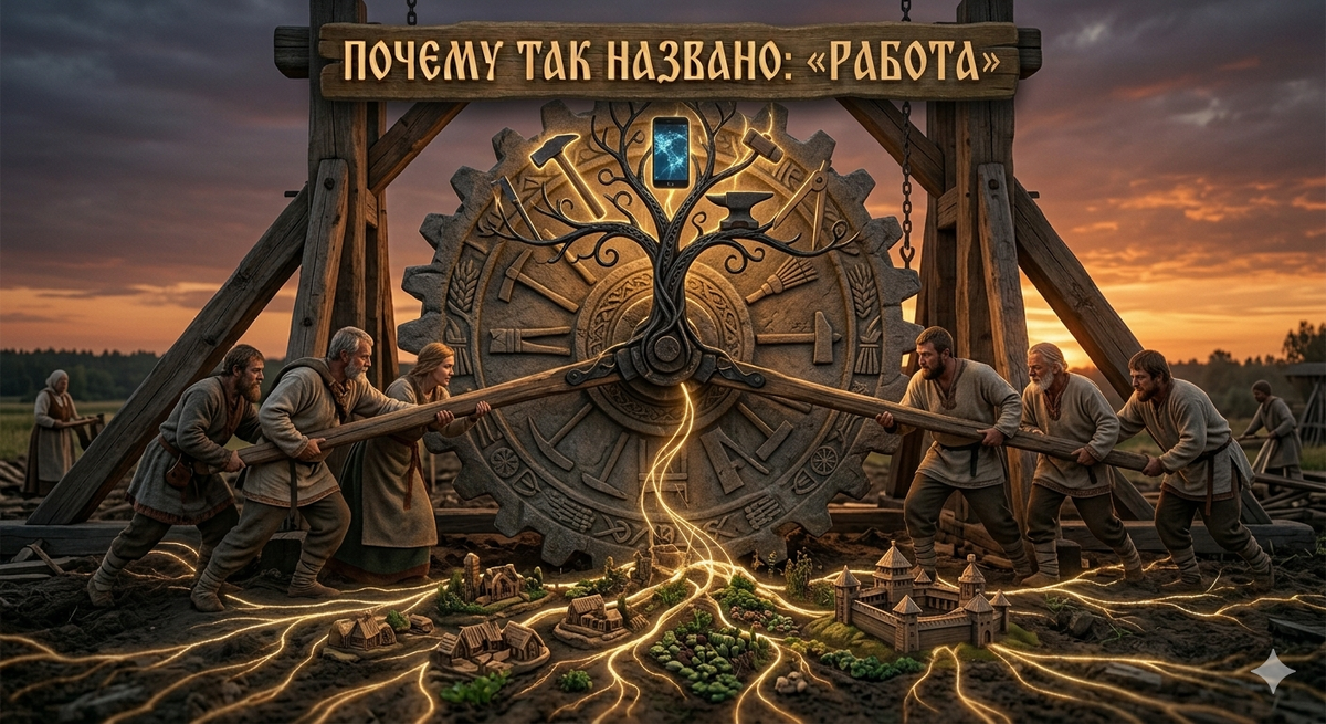 - Логика нейминга: Изначально «работа» — это тяжелая, подневольная доля, участь «роба» (сироты, лишенного наследства и защиты рода). Работа — это то, что ты должен делать, чтобы выжить, когда у тебя нет своей «доли» (счастья).