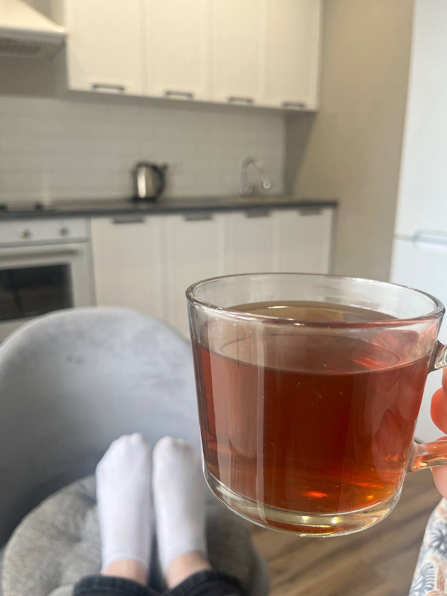 Завариваю себе чай со смородиной и медленно пью, глядя не в окно, а просто перед собой - просто приятно видеть интерьер своей квартиры.