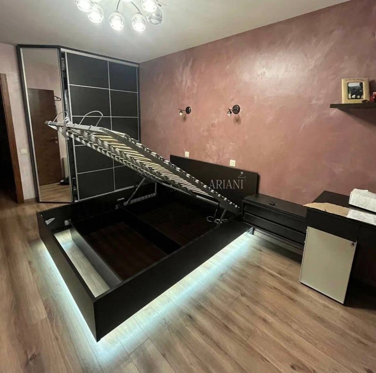 ! Клиенту хотелось создать пространство в спальне, которое помогало бы расслабиться, отдохнуть, успокоить мысли, создать интимную атмосферу. И, конечно, не забыть, что неплохо бы иметь доп. место для хранения вещей. Поэтому мы сразу остановились на том, что будет большой короб для хранения вещей с подъёмным механизмом. А для создания уюта в пространстве предложили сделать кровать с "парящим эффектом". Он получается за счёт "утопленных" вглубь царг и мягкой подсветки по всему периметру. Помогли клиенту определиться с цветом, выбрали Венге Луизиана (9763BS) — спокойный тёмный оттенок, который отлично смотрится в спальне. Размер подобрали так, чтобы кровать была удобной и не перегружала комнату: Ш166 см × В84 см × Д206 см. Основание сделали усиленное ортопедическое, рассчитанное на комфортный сон и правильную поддержку. В конструкции кровати использовали только качественные материалы, ЛДСП Egger толщиной 16 и 25 мм — это про прочность и стабильность на долгий срок службы. К кровати