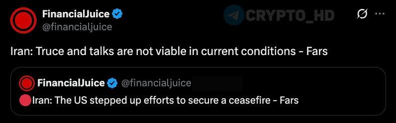 🇮🇷 Fars: Иран не принимает перемирие, называя переговоры с США нелогичными в текущей ситуации. Тем временем США наращивают усилия для достижения прекращения огня. Ранее: соглашение на 15 пунктов Crypto Headlines