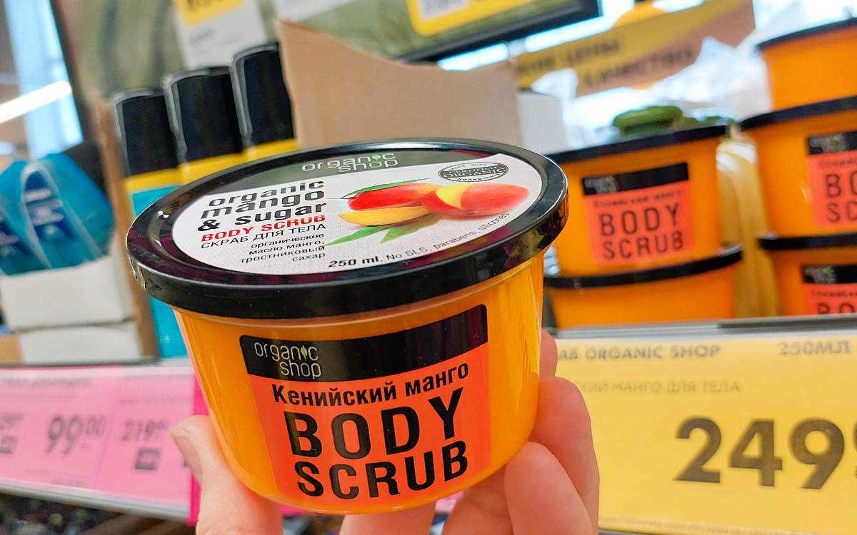 Привезли необычный Скраб для тела Organic Shop Кенийский манго, 250мл по цене 249 рублей. Чем он показался интересным?