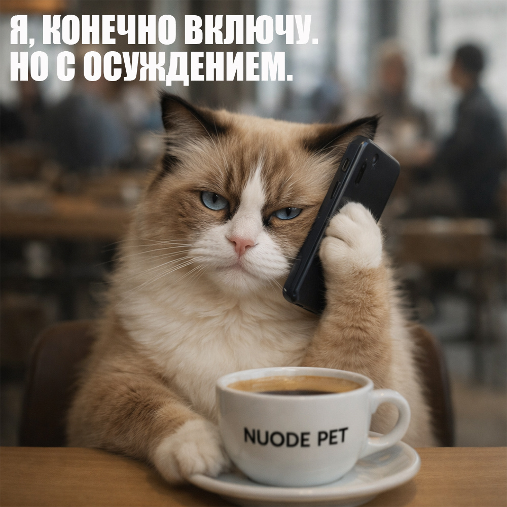 Привет, кожаные! Если вы здесь впервые — у нас тут немного необычный формат. Этот канал ведут коты. Да, самые настоящие. Со своим характером, мнением и жизненным опытом. Куня — отвечает за стратегию и держит всё под контролем. Нюша — за стиль, настроение и, как выяснилось, пакеты. Василий Петрович — за науку и серьёзные разговоры. А Курилыч — за жизненную мудрость и истории, после которых есть о чём подумать. Если вам откликается такой формат — подпишитесь на нас. Для Вас — мелочь. А нам приятно. Сегодня среда, а значит — время новых мемов. Но в этот раз котобанда решила не просто посмеяться, а разобрать явление, которое знакомо каждому. Причём настолько, что иногда уже вызывает не смех… а лёгкое внутреннее напряжение. Речь, конечно, о голосовых сообщениях. Особенно в тех самых мессенджерах, где ты не можешь быстро перевести голосовое в текст, пробежать глазами, а вынужден включаться, слушать, вникать… и терпеть. И вот вроде бы удобная штука. А по факту — один из самых спорных форматов