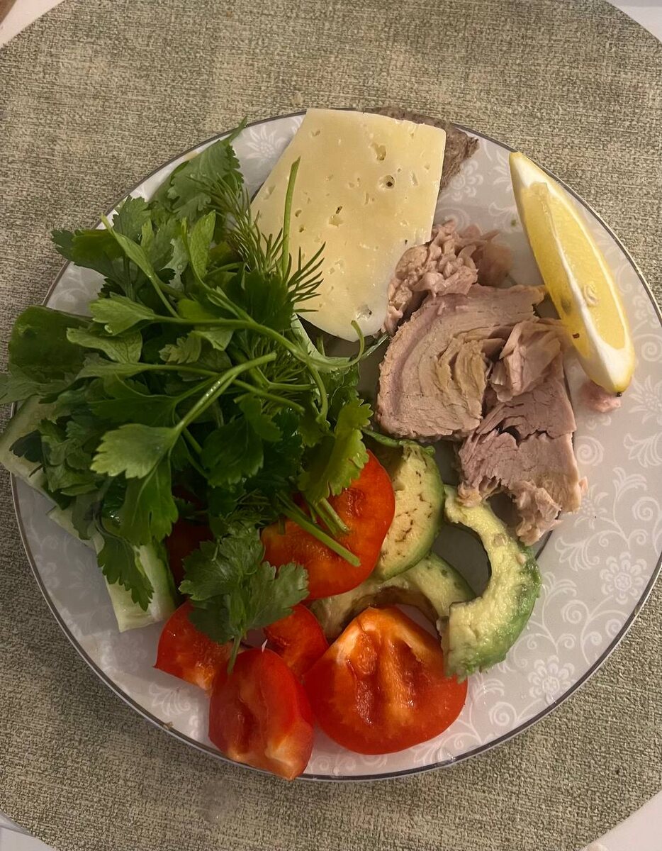 Ужин: тунец, сок из дольки лимона, зелень (кинза, петрушка), огурец, перец, авокадо, кусочек сыра. Иногда мне кажется, что еды слишком много для похудения 😁 Был еще перекус: кофе с киви. Вода в течении дня стабильно! Может кто-то хочет присоединиться ко мне? У меня впереди еще 2 полноценных дня в системе.