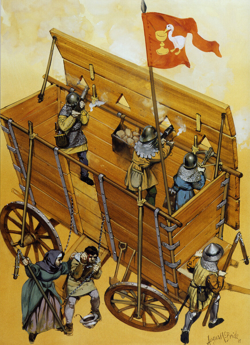 Жижка, в отличие от своих противников, вел войну нового типа. Он активно использовал мобильные укрепления - вагенбурги (укрепленные повозки), превращая поле боя в управляемую ловушку. Его армия действовала гибко, сочетая оборону и внезапные контратаки.