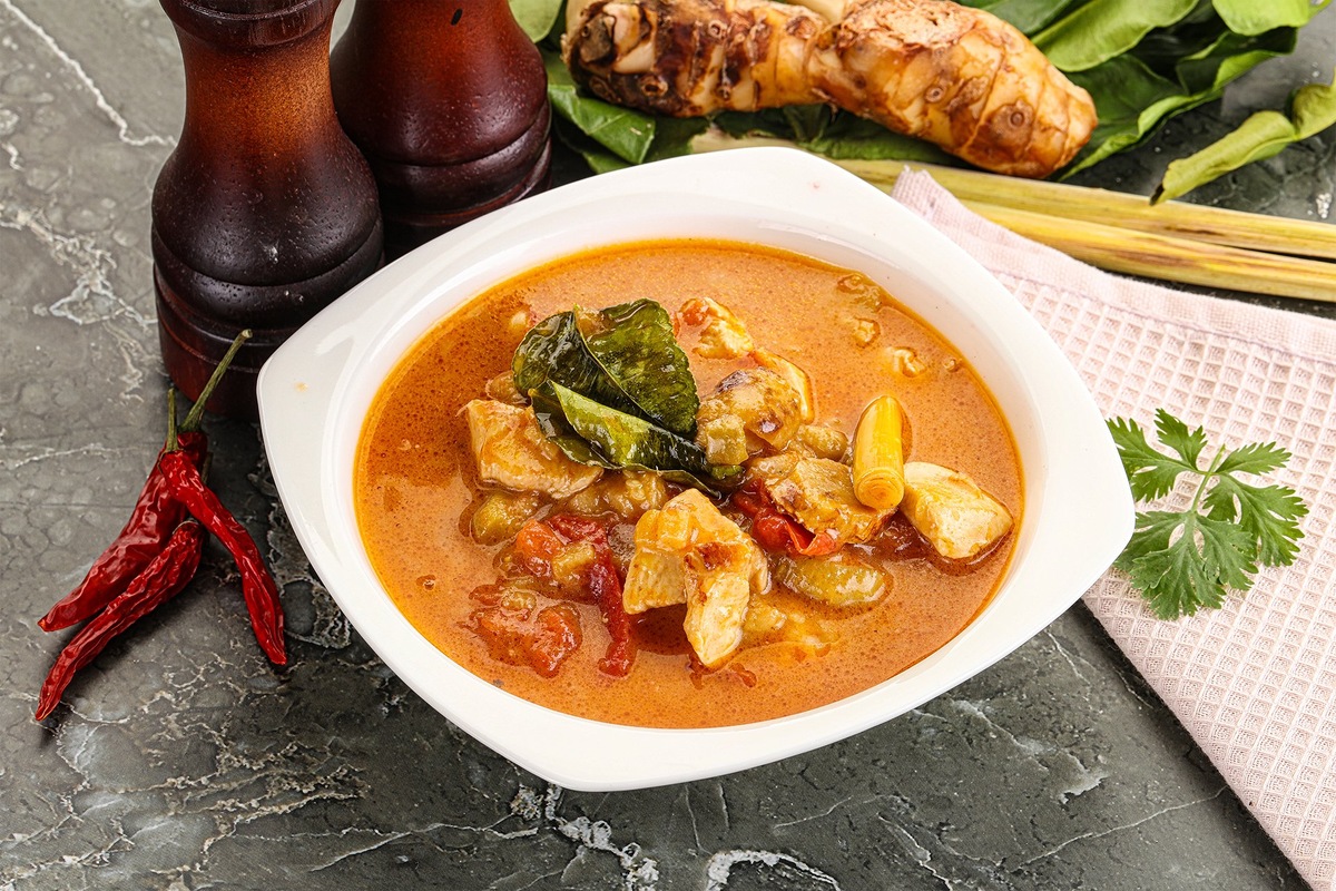 Том Ям Кхун (с кокосовым молоком) — более мягкая, сливочная версия. Кокосовое молоко смягчает остроту и кислоту, делая суп более нежным и сытным. В Таиланде его часто готовят с курицей или морепродуктами.