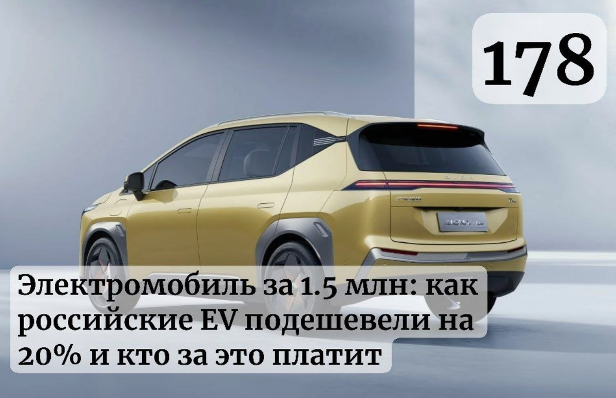 20 марта Lenta.ru опубликовала данные, которые заставили многих перечитать абзац дважды. Средняя цена российского электромобиля с учётом субсидий сейчас — 1,5-2,5 миллиона рублей. Это меньше, чем многие китайские кроссоверы с ДВС.