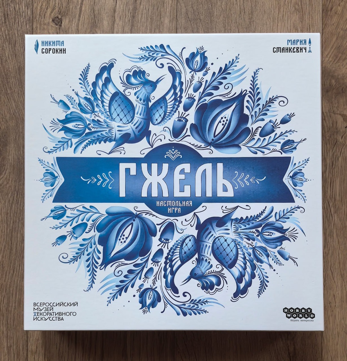 Комбинируйте жетоны цветов с изящными орнаментами и составляйте из них уникальные узоры для фарфоровых статуэток. Тут появилась ещё одна настольная игра по народным промыслам от создателей «Мезени». В этот раз Никита Сорокин сваял абстрактный пазл по мотивам гжельской росписи. На смену полю жетонов, имитирующему игры «три в ряд», пришли составные планшеты, но суть осталась прежней. Нужно выкладывать символы по особым правилам, выполнять задачи, которые подкидывает специальная колода (собрать больше одинаковых или особых узоров и т. п.) и набрать больше очков, чем соперники. Активный игрок выбирает животное. Все снимают жетоны вокруг этого животного со своих планшетов и решают, как их использовать: выложить обратно на свободные орнаменты или перевернуть на сторону штампов и оставить про запас. Эти штампы становятся своего рода запасом действий, которые можно использовать в любой последующий момент партии. Когда приходит подходящий момент, игрок выкладывает штамп на свободную клетку