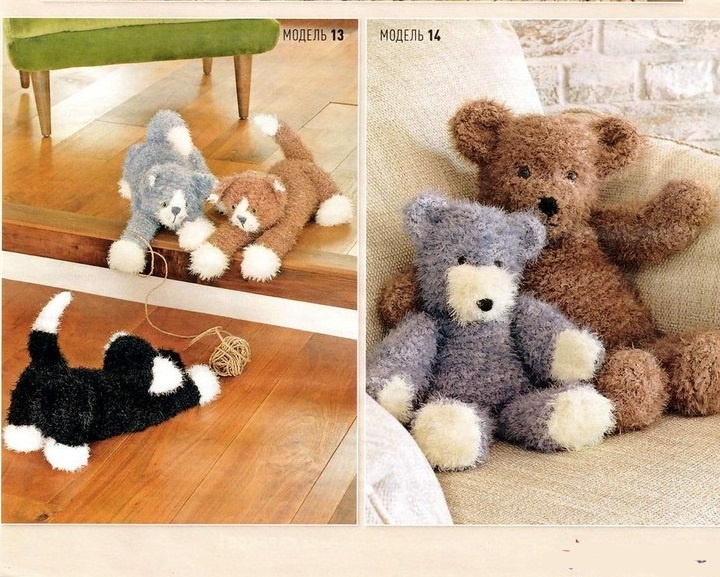 Вам потребуется: пряжа Sirdar Touch (50% полиэстер, 50% нейлон, 67 м/100 г) — для серо-белого кота —3 серых и 1 кремово-белый моток, для коричнево-белого кота — 3 светло-коричневых и 1 кремово-белый моток,