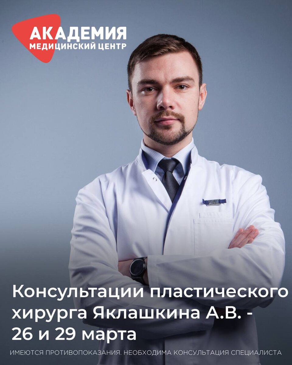 ! 📅 26 и 29 марта у вас есть возможность попасть на приём к Яклашкину Александру Веняминовичу — опытному пластическому хирургу с большим стажем работы, который поможет реализовать ваши эстетические пожелания и скорректировать внешность безопасно и профессионально. Основные направления работы: Основные направления работы: ⭕️ эндоскопические подтяжки верхних 2/3 лица и СМАС/Спейслифтинг нижней 1/3лица и шеи ⭕️ сохраняющая расширенная блефаропластика с перераспределением жировых пакетов ⭕️ все виды маммопластики ⭕️ коррекция контуров тела, липоскульптура, липофилинг, абдоминопластика с ушиванием диастаза и коррекцией грыж Также врач проводит комплексные пластические и комбминированные операции, коррекцию рубцов и контурных деформаций. Консультация — это возможность получить профессиональную оценку, обсудить пожелания и определить оптимальный план коррекции. 📍 Приём проходит в филиале МЦ «Академия» на ул. Красноармейская, 2 Запись в клинику через👇 — телефон 📞 +7 8422 27-05-05 и