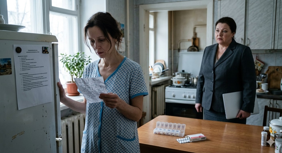 Но Диана уже видела, как сестра смотрит на список на холодильнике — её список, с её почерком, с её дозировками. Смотрит так, как смотрит проверяющий на отчёт подчинённого.