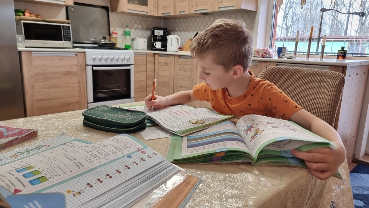 Всё сам что-то находит, вписывает, списывает, листает туда-сюда))) Моська такая сосредоточенная, зацуловала бы😅🥰