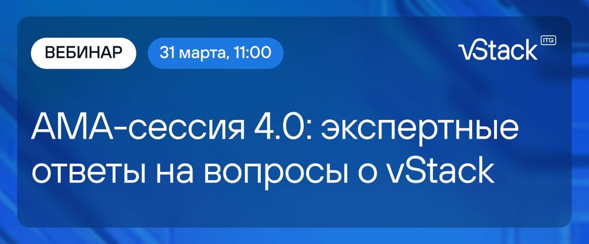 0. Сбор вопросов заканчивается сегодня, 25 марта. Это ваш шанс напрямую обсудить развитие платформы, импортозамещение и задачи для ИТ-инфраструктуры в 2026 году. Ждем ваши вопросы до 25 марта (включительно) на почту info@vstack.com. Спикер: Евгений Карпов, гендиректор vStack. Когда: 31 марта в 11:00. 🔗 Регистрация