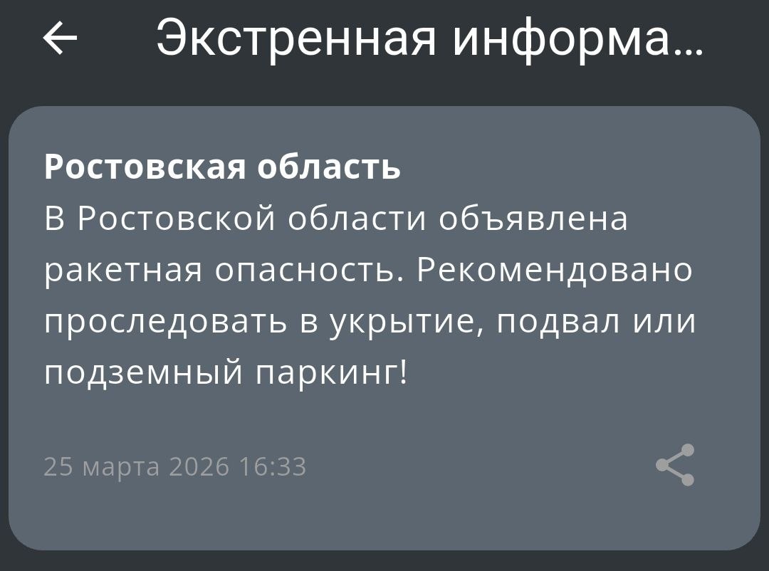 ‼️Ракетная опасность объявлена в Ростовской области