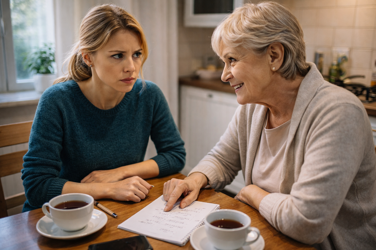 Вот это её насторожило по-настоящему. Не слова свекрови — а то, как он сидел. Он не поднял голову, не сказал «да, мам, расскажи» — он просто смотрел вниз, и в этой позе читалось что-то знакомое. Так сидят люди, которые уже знают, о чём будет разговор, и заранее немного стыдятся его.