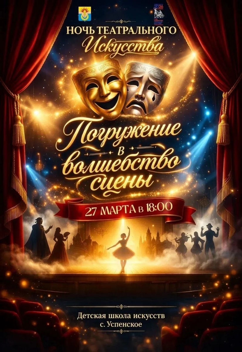 ✨ Успенский район присоединяется ко Всероссийской акции «Ночь театрального искусства — 2026», приуроченной к 150-летию Союза театральных деятелей РФ. Приглашаем вас на «Театральные встречи»! 📍 Дата: 27 марта ⏰ Время: 18:00 🏛 Место: ДШИ, с. Успенское Что вас ждет? 🎭 Мастер-классы по актерскому мастерству и сценической речи 🎭 Отрывки из спектаклей в исполнении юных дарований 🎭 Театральные игры для детей и взрослых Вход свободный! Ждем всех, кто влюблен в театр или только хочет открыть для себя этот удивительный мир! 🌟 https://max.ru/id2372001505_gos https://ok.ru/group/70000041523919 https://vk.com/public212083585 https://dzen.ru/id/660af8bc3bd95d5b99e56429 - подпишись на СВОй "Рассвет".