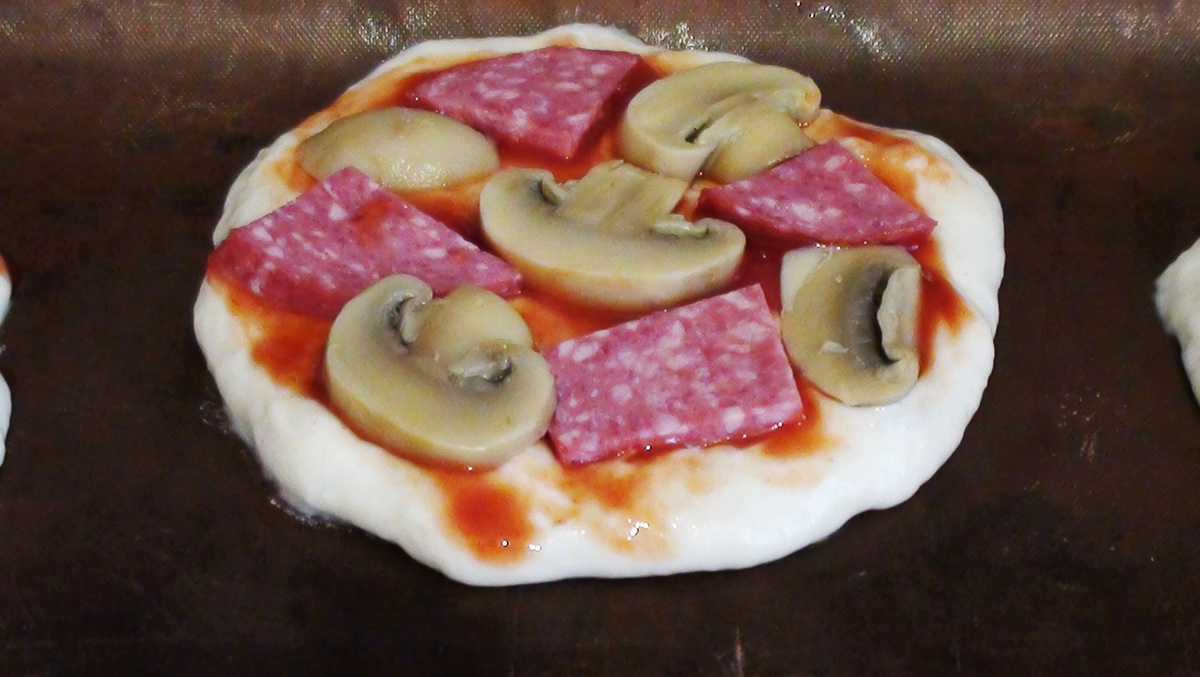 Если вы любите пиццу так же сильно, как я, вам понравится этот рецепт. Пицца получается очень вкусная и не занимает много времени. ТЕСТО Смешать все ингредиенты в миске, муку добавлять постепенно, её может уйти меньше. Тесто должно получиться густым и липким. Накрыть миску полотенцем и убрать в тёплое место на 40-50 минут, когда тесто подойдёт можно сразу печь. НАЧИНКА Сыр натереть на крупной тёрке. Колбасу нарезать кусочками. Грибы нарезаем пластинками. Когда тесто подошло выкладываем из него лепёшки. Смазываем кетчупом, выкладываем грибы и колбасу. Делаем сеточку из майонеза и посыпаем сыром. Убираем в разогретую духовку до 180 градусов на 20-25 минут. Пицца получается очень вкусная, такую в магазине не купишь.)