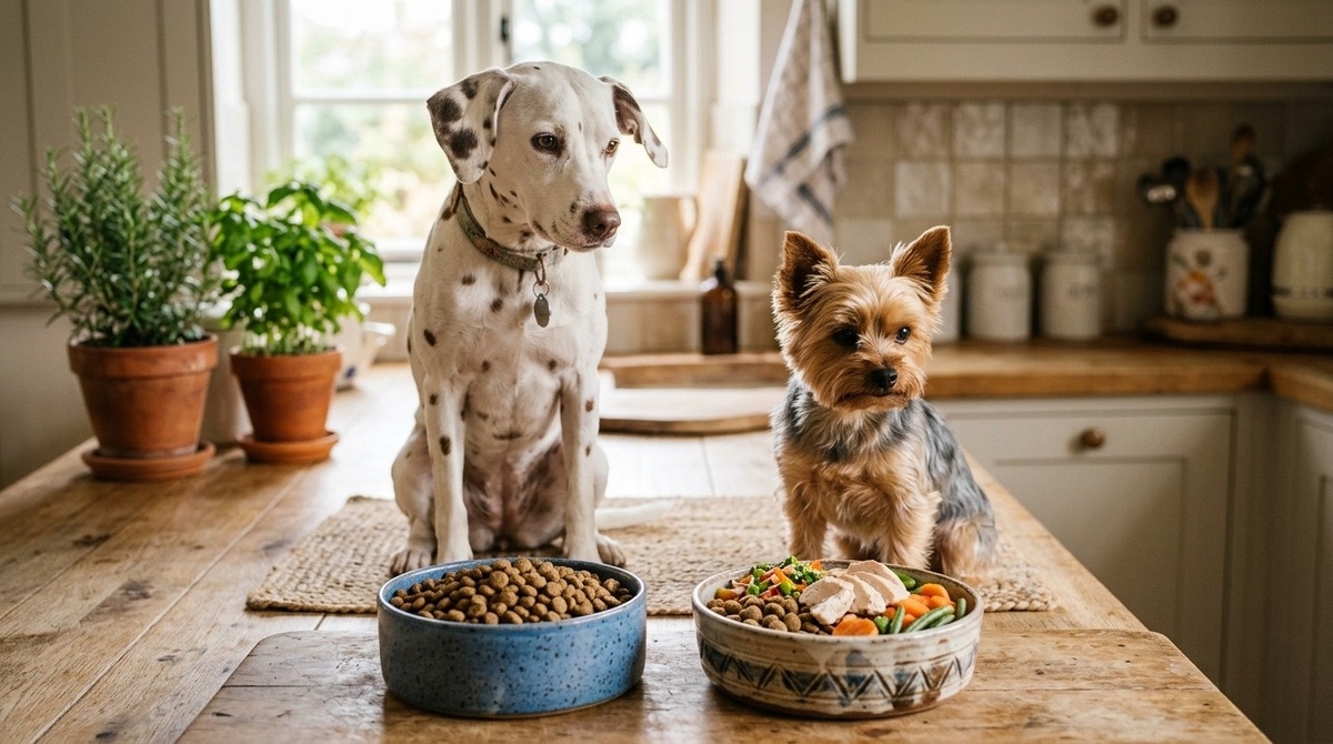 Я часто слышу этот спор. В зоомагазинах, на форумах, в комментариях. Смешивать или не смешивать? Сухой корм плюс натуралка это нормально или убийство для собаки? У меня две собаки. Буля беспородная, белая с пятнами, живёт у меня уже много лет. Матильда йоркширский терьер, маленькая, гордая и считает себя главной. И они едят смешанно. Сухой корм плюс натуральные добавки. И чувствуют себя отлично. Но когда я говорю об этом, на меня смотрят с ужасом. Как? Нельзя же смешивать! Это разные системы пищеварения! Это несбалансированно! Это опасно! Я слушаю, киваю и думаю: а откуда это всё взялось? В этой части я разберу пять самых популярных страшилок о смешанном кормлении. И расскажу, что в них правда, а что нет. Это самый распространённый миф. Якобы сухой корм переваривается по-одному, а натуралка по-другому, и если их смешивать, организм собаки не знает, какие ферменты включать, и всё гниёт в желудке. Звучит страшно. Но это не так. У собаки одна система пищеварения. Она переваривает и сухо